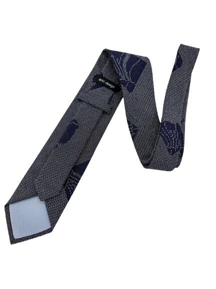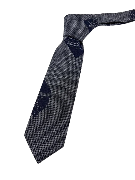 This refined indigo necktie features the traditional yaburegami (破れ紙) motif—“torn paper”—woven into a subtle geometric texture. Symbolizing imperfection and spontaneity, the design adds a touch of quiet individuality and depth, blending classic Japanese artistry with modern elegance.